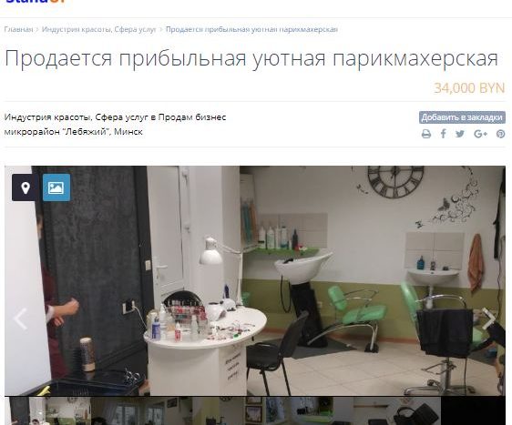 // Присмотреть к небольшой парикмахерской в престижном районе Минска. Идеально подходит спокойного ведения бизнеса. Небольшой коллектив, вполне способен приносить хорошую выручку салону, а следовательно стабильный доход ее владельцу. Можно использовать, как дополнительный доход к основной работе, особенно для живущих рядом с салоном. Ревотюк А. М. {Компания «Реал Босс»} для ПРОДАМБИЗНЕС.БЕЛ