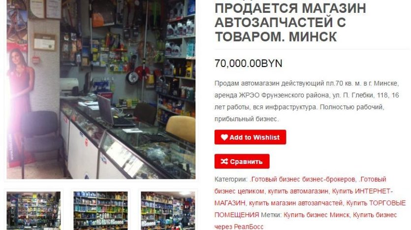 Недавно был выставлен на продажу действующий автомагазин в Минске.