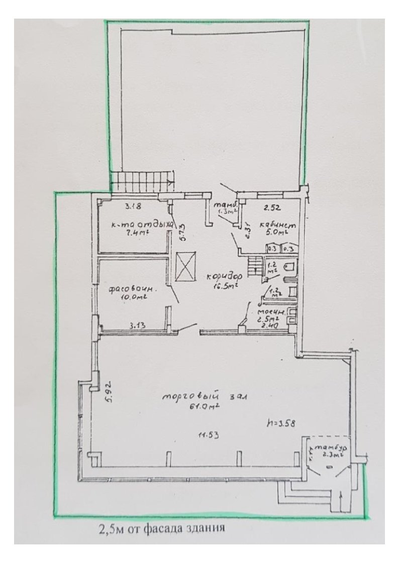 Магазин расположен в спальном, густо населенном районе г. Минска. Магазин является встроенным в 5ти — этажный жилой дом, размещается на первом этаже. Два уровня (1ый этаж + цокольное, грузовой лифт). Имеет два отдельных входа: для посетителей, персонала и для загрузки продуктов. Помещение имеет необходимый состав торговых, складских, подсобных, бытовых помещений.