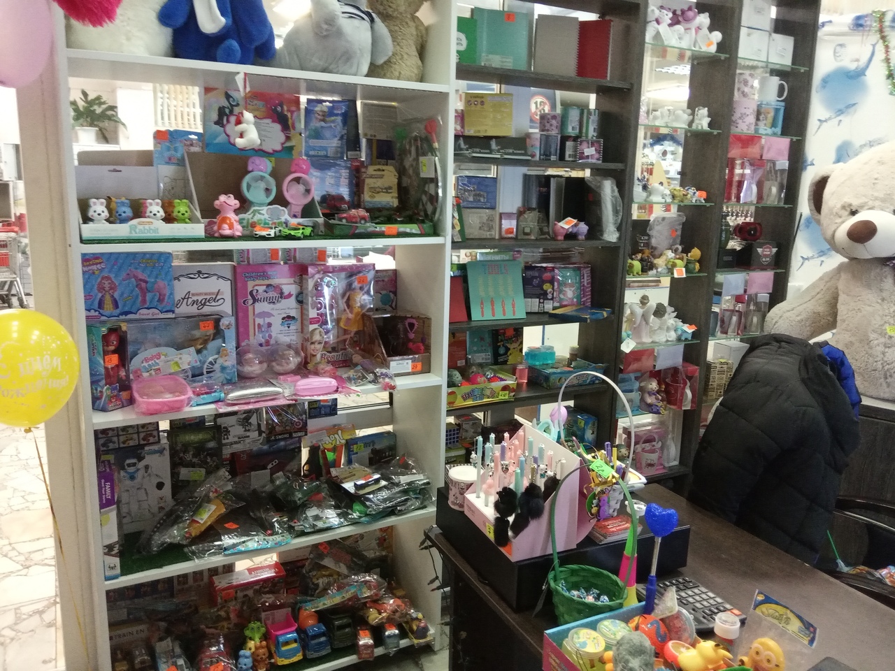 — Магазин полностью укомплектован товаром и витринами. В продаже все самые модные детские товары, мягкие игрушки, подарочные подушки, сувениры, подарки, цветы, шары.