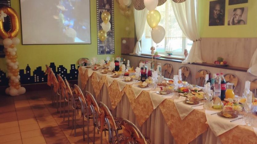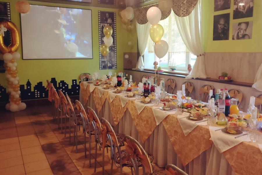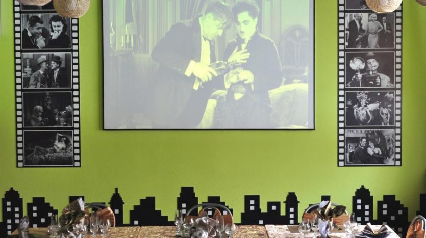 Банкетные залы заведения оформлены необычайно стильно: мягкие цвета оттеняют черно-белое оформление стен. На них висят ретро-фотографии. Старинные монохромные фильмы также ежедневно демонстрируются на большом плоском экране в центре главного зала кафе-бара.
