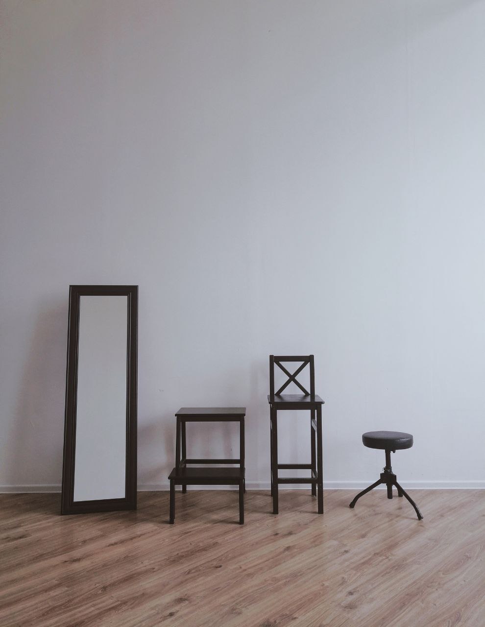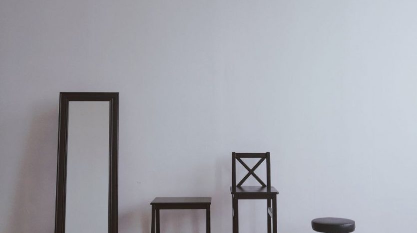 — На рецепшене стол и стул администратора, вешалка, диван и кофейный столик.