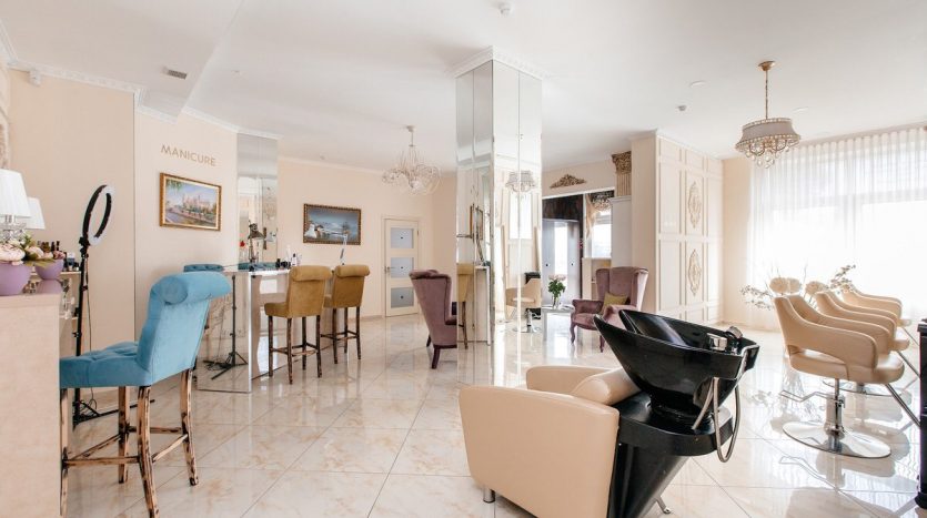 Салон просторный, с итальянским оборудованием и очень дорогим интерьером.  Высокие потолки и большое количество дневного и искусственного света, вентиляция, WI-FI, спутниковое TV, аудио-оснащение. Помещение 90 кв. м.(выгодная и долгосрочная аренда с правом первоочередного продления)