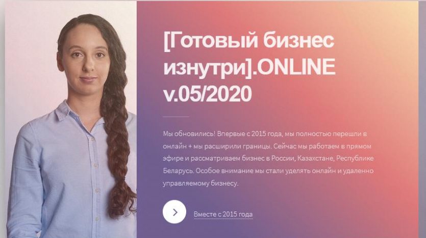 Мы обновились! Впервые с 2015 года, мы полностью перешли в онлайн + мы расширили границы. Сейчас мы работаем в прямом эфире и рассматриваем бизнес в России, Казахстане, Республике Беларусь. Особое внимание мы стали уделять онлайн и удаленно управляемому бизнесу.