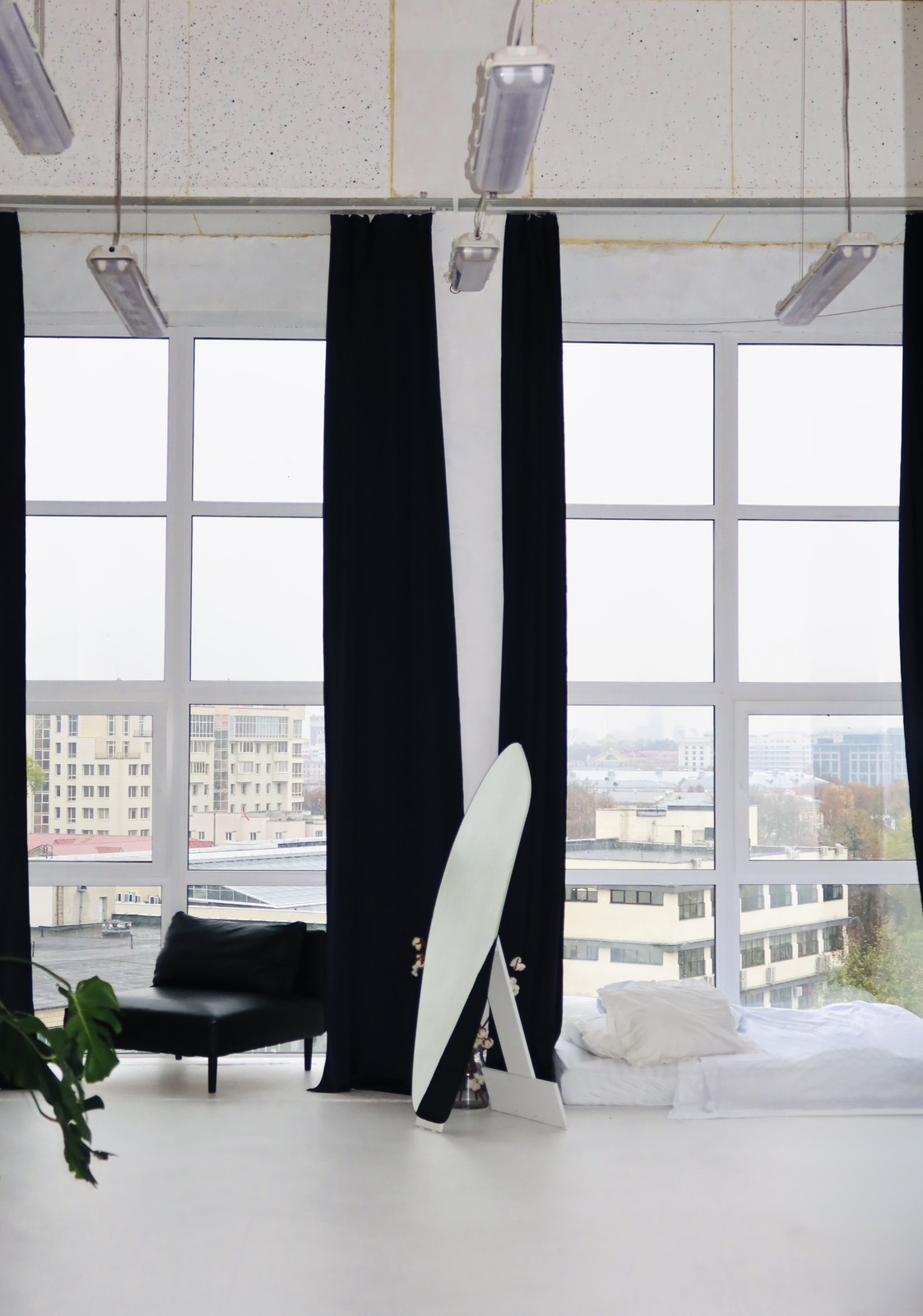 Уникальное архитектурное решение: помещение обладает панорамными окнами в пол, являющимися единственными такого рода во всем здании. Они обеспечивают беспрецедентный уровень естественного освещения (солнечная сторона, высокий этаж) и открывают шикарный вид на город.