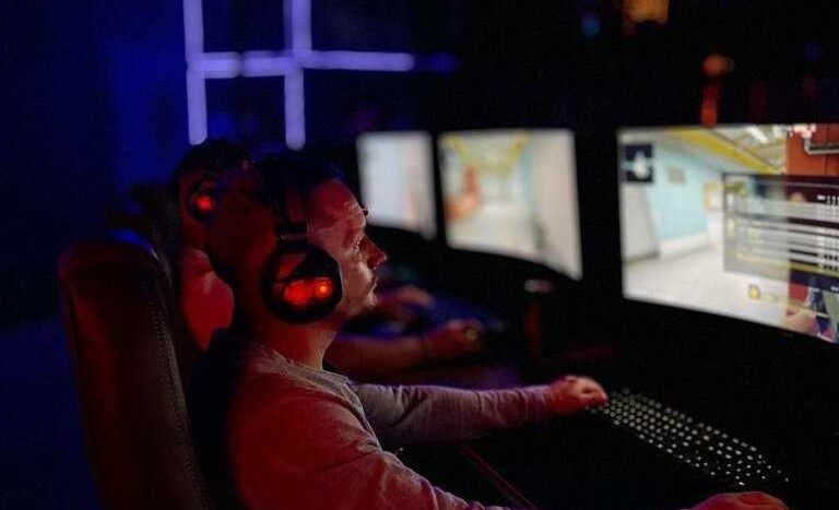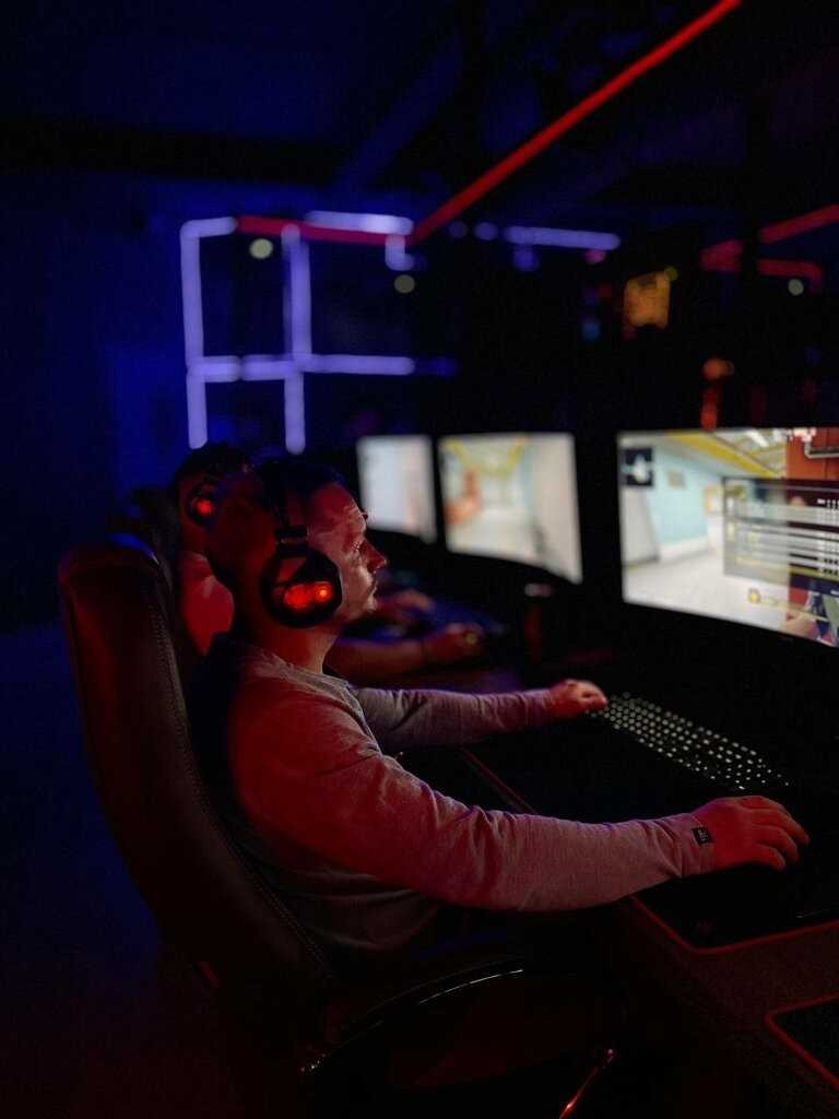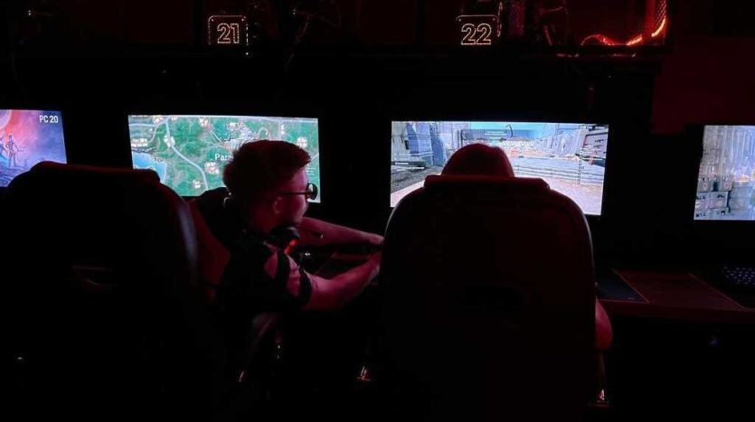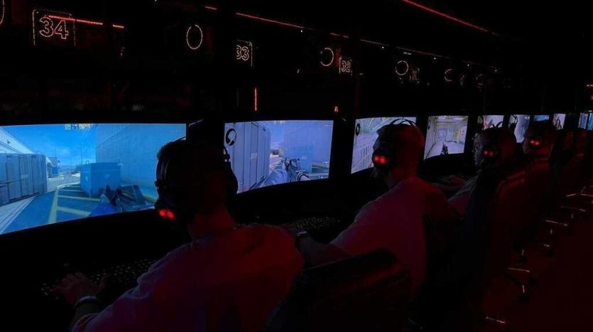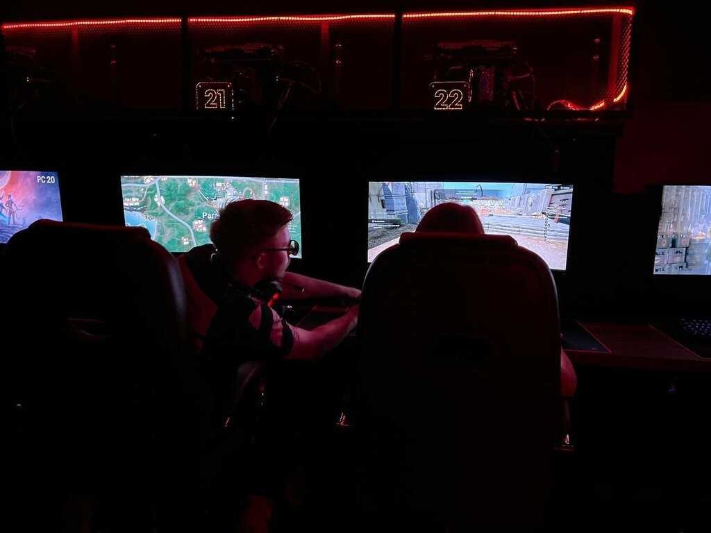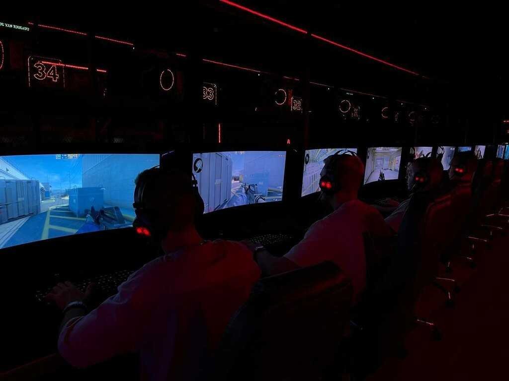 38 игровых ПК – идентичная конфигурация: RTX 3080, i5-12400F, 32 ГБ ОЗУ, мониторы 34″ 165 Гц, профессиональные игровые периферия (Redragon, HyperX).