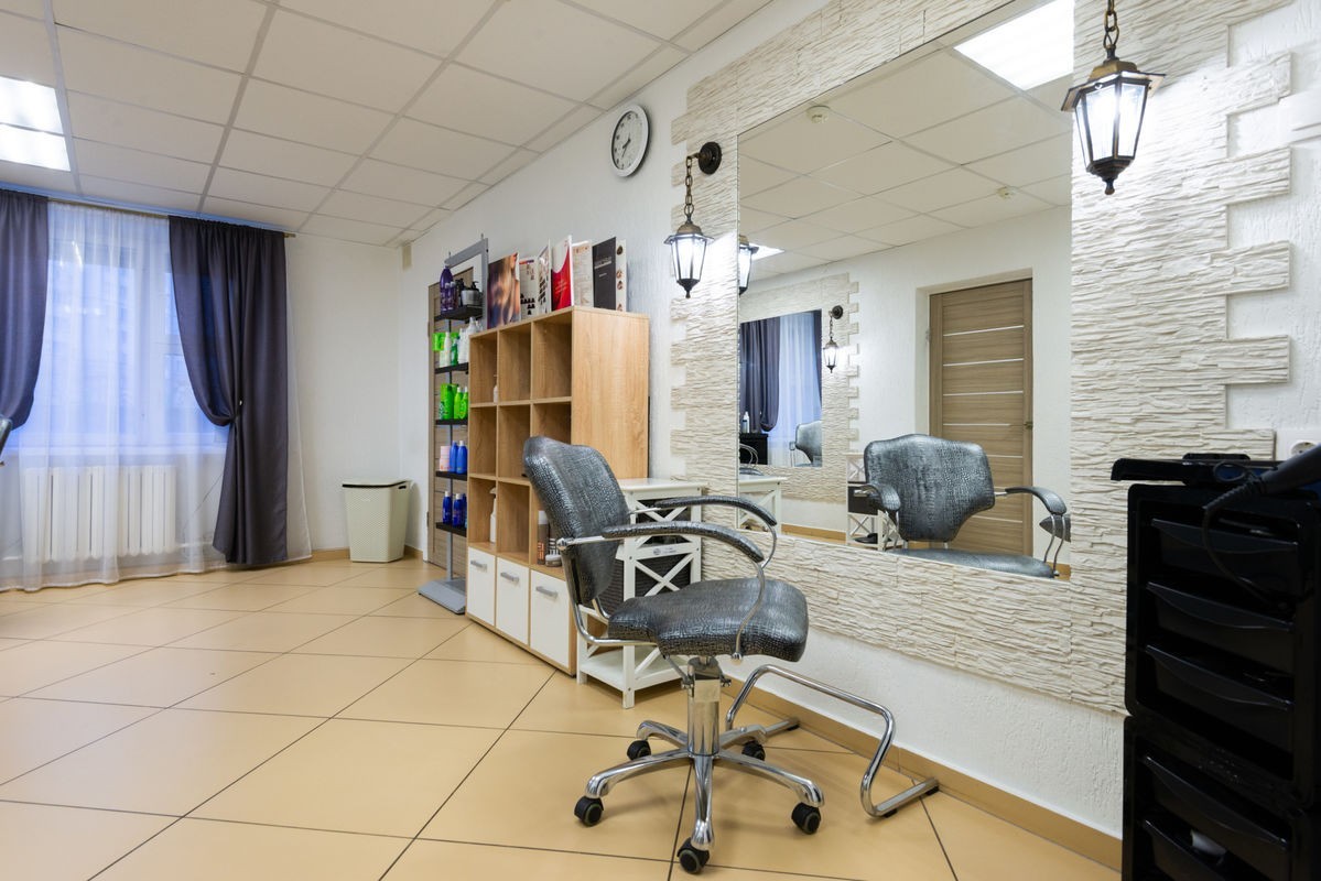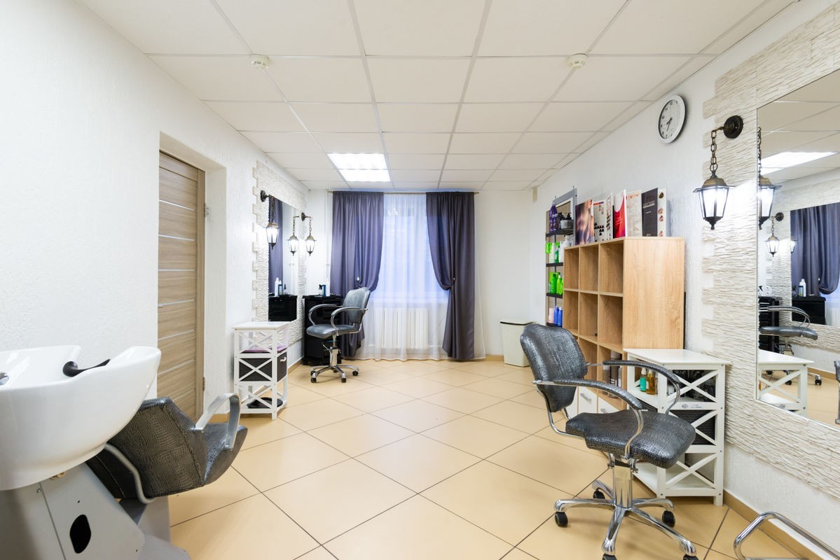 Просторный парикмахерский зал на 2 рабочих места с мойкой.