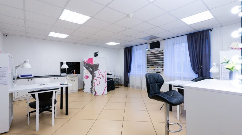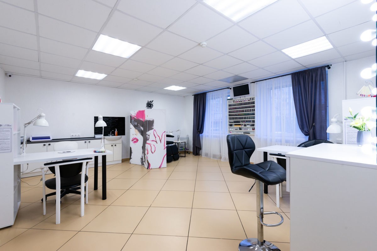 Изолированный маникюрный зал на 3 основных и 2 педикюрных места с потенциалом для расширения до 2 дополнительных мест.