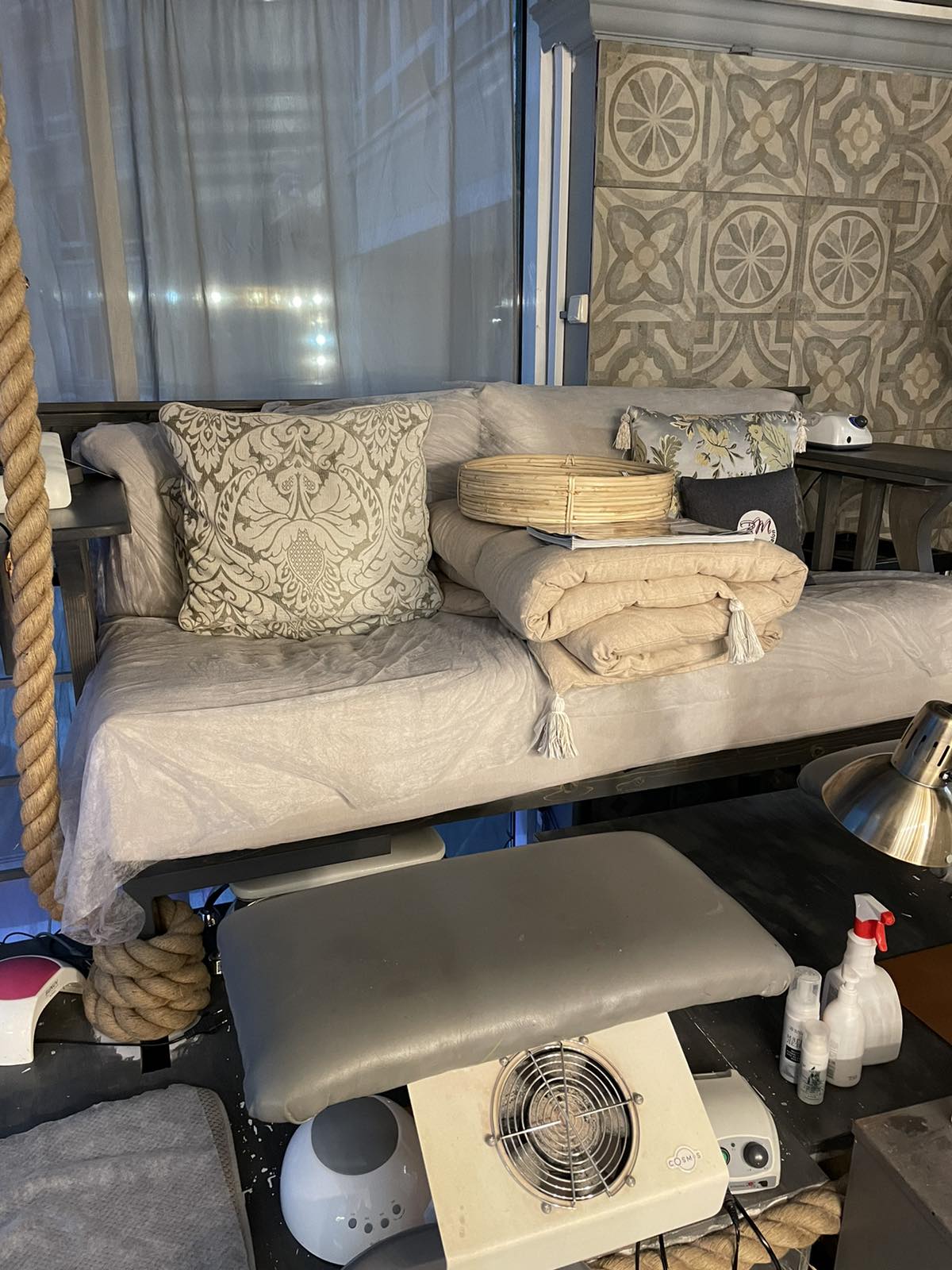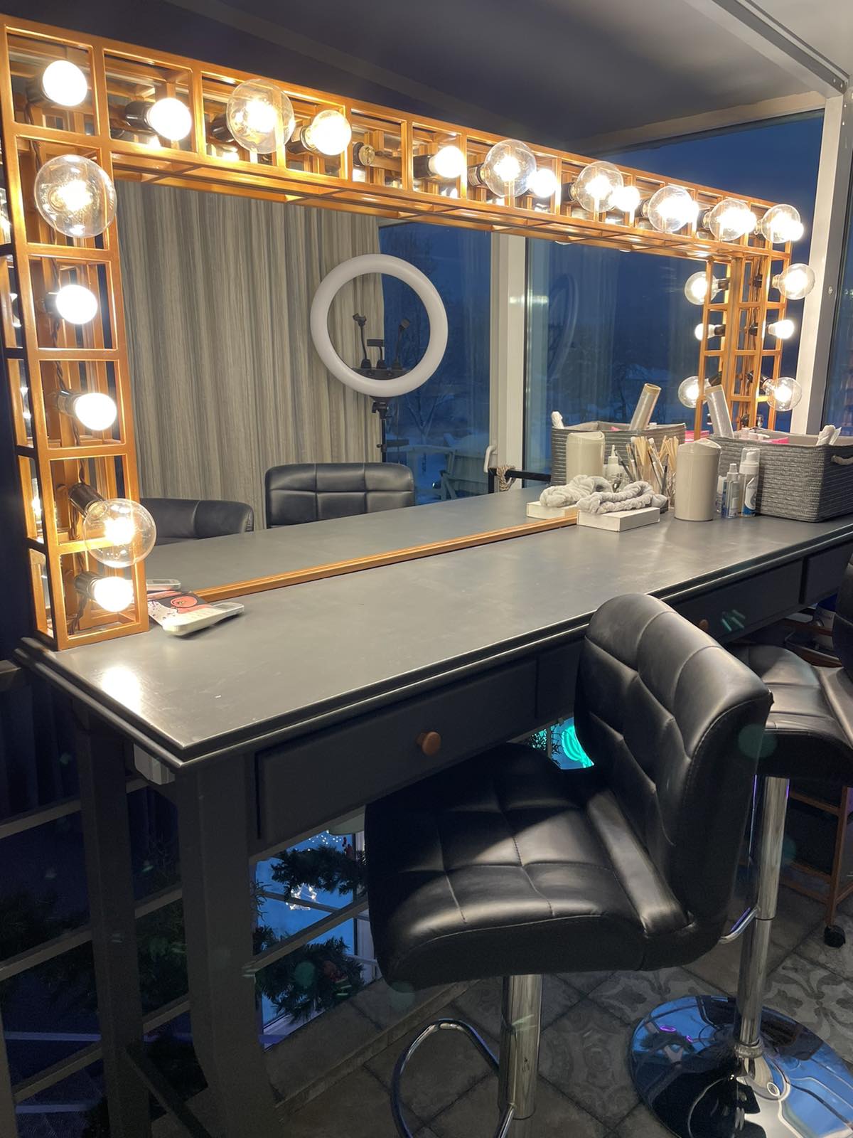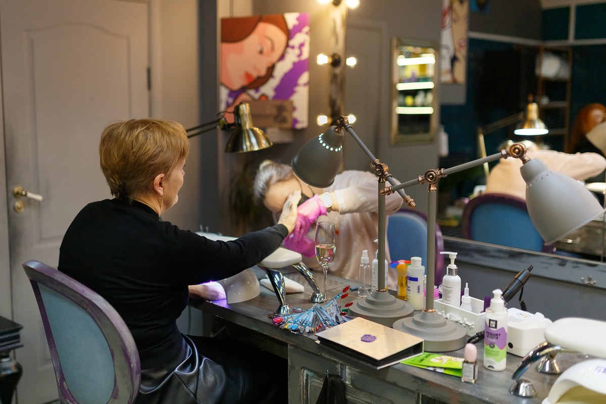 В салоне организовано 1-но парикмахерское рабочие место основное и два дополнительных, косметические услуги и массажа (процедур по телу), 3 маникюрных места основных и два дополнительных и два педикюрных, наращивание ресниц, ламинирование бровей, великолепный Майк-ап и многое другое.