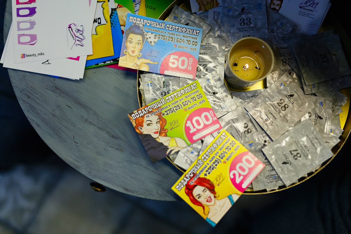 Салон расположен по адресу: ул. Сторожёвская 8 в арке. Двухэтажный с большими окнами. Площадь помещения 110 м2 (аренда 30BYN).